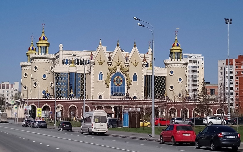 Сказочное здание кукольного театра Экият, что, собственно, и переводится с татарского как «Сказка», будто шагнувшее со страниц книги «Волшебник Изумрудного города» прямо на площадь Казани, по дороге добавив в свой декор восточного колорита. Таким оно видится издалека. А когда подходишь ближе, вдруг замечаешь тоненькую фигурку Маленького принца на полукруглом балконе, который взмахнул руками, то ли готовый вот-вот взлететь в небо, то ли броситься обнимать пришедших к нему в гости детей. Но принц не простой, а уже свой, татарский, поскольку его, развевающиеся на ветру, волосы прикрыты тюбетейкой.