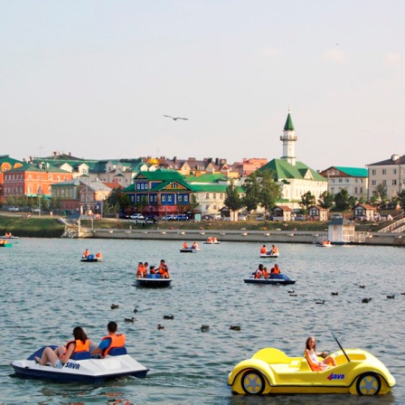 Мостовые древней Татарской Слободы оказались сплошь зашиты в современную плитку, прямо как в Москве, и из-за этого её пёстро раскрашенные дома и ворота казались не такими уж и древними, а скорее похожими на какие-то киношные декорации. Тем более что гладь озера Верхний Кобан рассекали катамараны в виде современных автомобилей – кадиллаков и седанов.