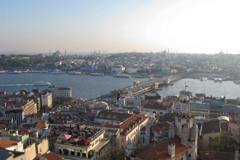 В ресторан, который выбрал Ашик для встречи с Дефне, она пришла немного раньше назначенного времени, и у неё появилась возможность полюбоваться потрясающе красивым видом на излучину Босфорского пролива и Золотого Рога. На купола и иглы минаретов многочисленных стамбульских мечетей, на Галатскую башню34 и башню Девичью, на вальсирующих по водной глади разнообразных катеров, теплоходов, грузовых барж и круизных лайнеров.