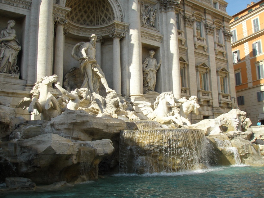 17 – Фонтан Треви – самый крупный фонтан Рима, высотой 25,9 м и шириной 19,8 м. Существует поверье, что человек, бросивший в него монетку, приедет в Рим ещё раз. В правой части фонтана расположены «трубочки влюбленных». По поверью, молодые пары, попившие из них воды, будут любить друг друга и жить в согласии до самой старости.