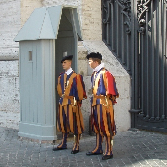 Потом она немного погуляла по садам Ватикана, чтобы остыть от впечатлений и приготовиться к новым – следующим пунктом её программы был величественный Собор святого Петра. Внутри он произвёл на Алёну даже более грандиозное впечатление, чем снаружи, может, потому что она почувствовала себя ма-а-ленькой букашечкой перед лицом Создателя. Похожее чувство было у неё в Иссакиевском соборе Санкт-Петербурга, но, конечно, Собор св.Петра был и шире, и выше. А когда вышла в самом возвышенном состоянии на площадь – чуть не расхохоталась от контраста только что увиденной утончённой красоты с одетыми в костюмы клоунов охранниками Ватикана21. Она, конечно, видела их фотографии в интернете, но воочию они смотрелись ещё смешнее, напоминая пёстрых попугаев.