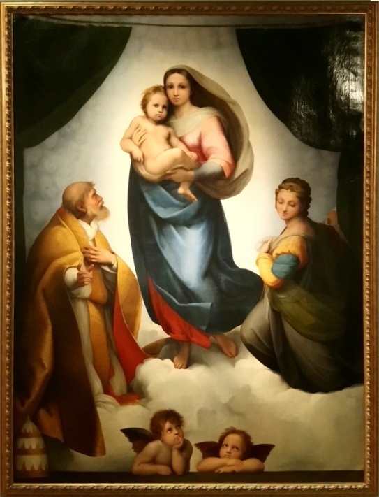 А через 2 часа Петя разрешил Маше открыть глаза (они пошли в Дрезденскую картинную галерею и там он осторожно вёл её по залам, а она честно выполняла данное ему обещание не открывать глаза, пока он не разрешит), встал за её спиной, прижал к себе и они так и застыли в этой позе, оба потрясённые величием и простотой, спокойствием и тревогой, одухотворённостью и приземлённостью, земной красотой и одновременно нездешностью лица Сикстинской Мадонны Рафаэля.