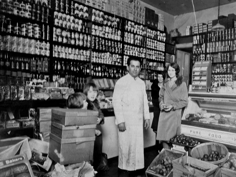 Отец Ялома в своем продуктовом магазине, ок. 1930 г.
