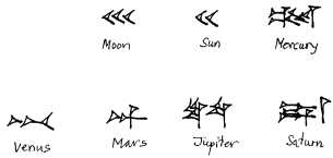В году двенадцать месяцев, 360 дней. Изучи продолжительность года и посмотри в табличках сроки исчезновения, видимости и первого появления звезд, а также положение звезды Ику в начале года, первое появление солнца и луны в месяцах Аддару и Улулу, восход и первое появление луны, наблюдаемое каждый месяц; посмотри оппозицию Плеяд и луны, и все это даст тебе правильный ответ. Таким образом, установи месяцы года, дни месяцев, и совершенно делай то, что ты делаешь. Если случится, что при первом появлении луны облачно, – примени для расчетов водяные часы… [приводятся дополнительные данные] Установи длину года и заверши свою интеркаляцию. Будь внимателен и не будь небрежен! [В завершение предлагается полезная табличка «хороших» и «плохих» дат.]