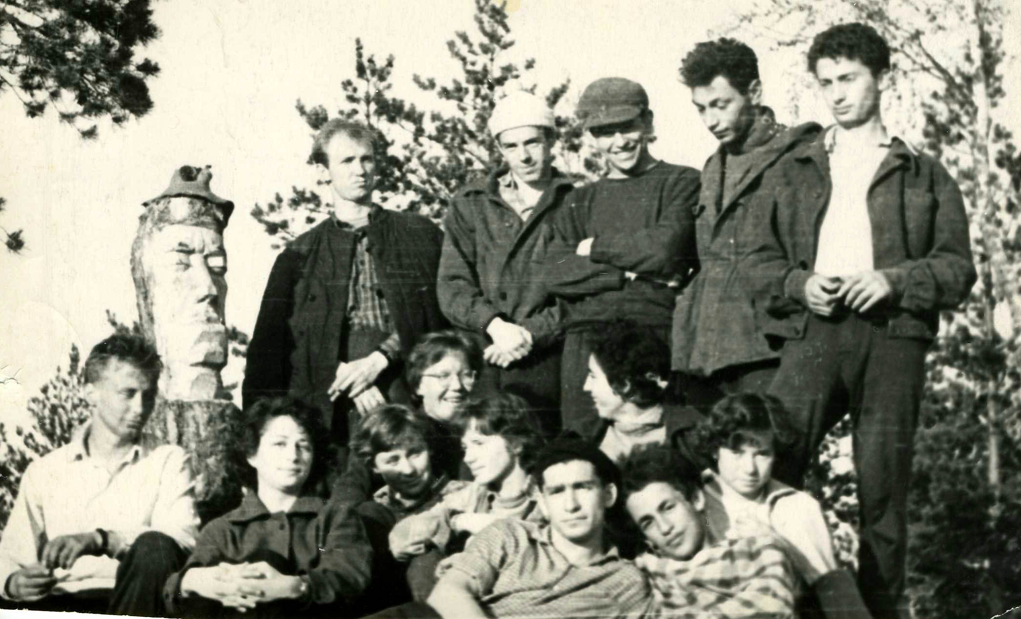 Слева направо: стоят Юра Павлов, Юра Луковатый, Валера Волох, Боб Бененсон и Володя Лумельский; сидят Владик Дружинин, Ира Ельник (Ёлка), Лариса Мажара, Вера Громова, Татьяна Забегалова, Исаак Гилютин, Кира Кахидзе, Эдик Халепский и Рита Разумовская.