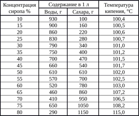 Соотношение воды и сахара в сиропах различной концентрации указаны в следующей таблице: