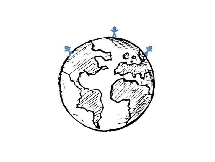 Взяв перо, он нарисовал земной шар с человечками на поверхности. В середине поставил жирную точку, а от неё проложил одинаковые по длине отрезки к каждой фигурке.