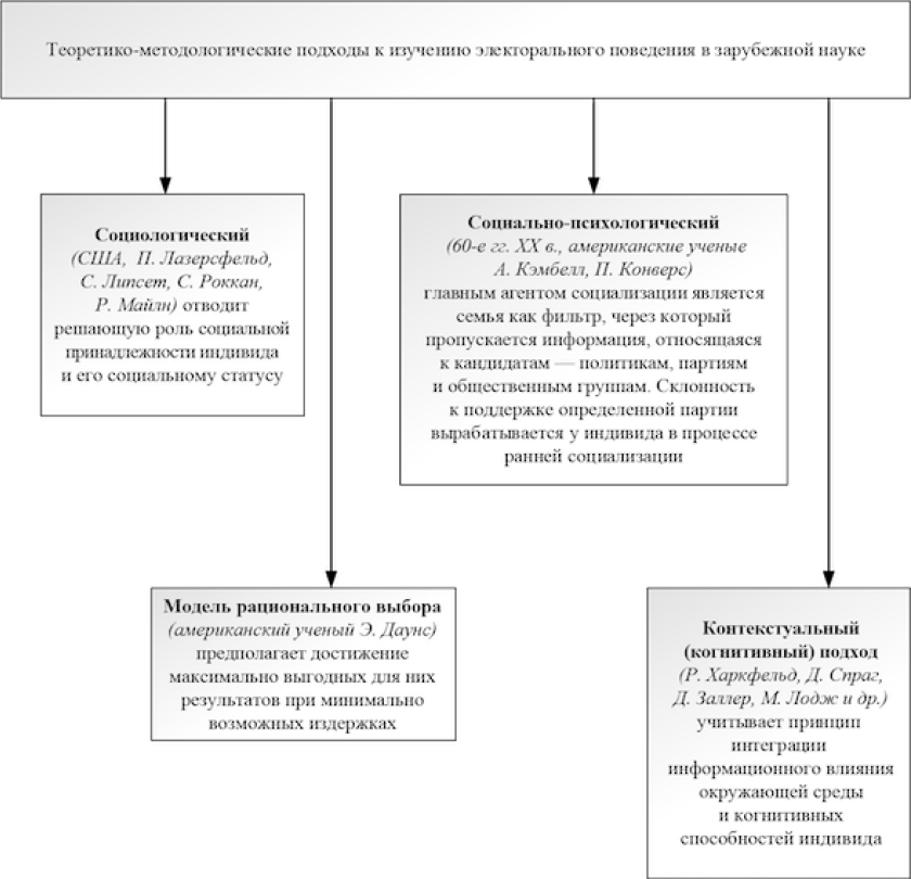 Рис. 2. Теоретико-методологические подходы к исследованию электорального поведения в зарубежной науке