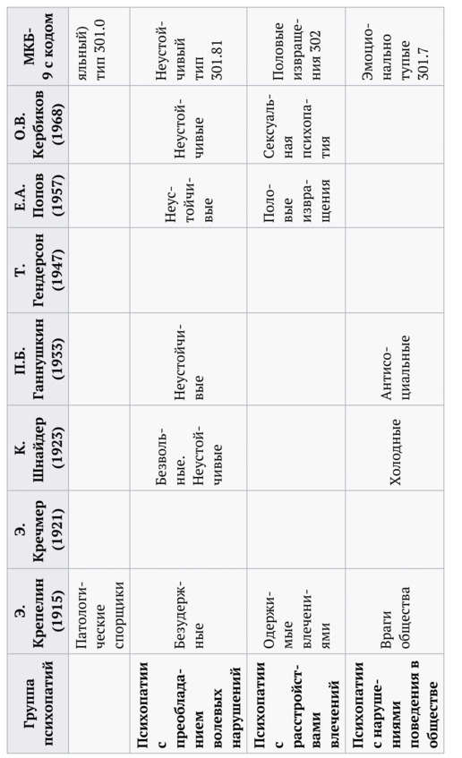 Отметим, что А. Е. Личко (2016), взгляды которого построены на характерологическом описании акцентуаций и психопатий детского и подросткового возраста, отмечает иной, внехарактерологический подход американской психиатрии к психопатоподобным нарушениям детского поведения. Он не упоминает списки ППЧ, но отмечает (на с. 301): «В американской психиатрии выделяются несколько типов поведенческого расстройства у детей и подростков. Их разделяют на социализированное и несоциализированное, каждое из которых может быть агрессивным или неагрессивным». Далее А. Е. Личко перечисляет многие характеристики поведения детей и подростков, которые позже вошли в ППЧ (мы пользуемся изданием 2016 года, но помним, что первое издание этой книги вышло в 1977 году, а сам Андрей Евгеньевич умер в 1994-м): «… недостаточность установления контактов, межперсональных связей, привязанностей в отношениях со сверстниками. Никогда в отношении их не испытывают чувства вины, не знают самоупреков… отсутствие всякого сочувствия и сострадания, физическую жестокость – столкновения, нападения, вандализм, нанесение телесных повреждений вплоть до убийств. К этому добавляются кражи вне дома, вымогательство, грабеж, налеты на магазины… прогулы, безделье, побеги из дома, бродяжничество, выпивка, употребение наркотиков, воровство…» Хотя все эти признаки весьма слабо отмечены даже в DSM-V (2013), все-таки видно, что американская психопатия хотя и медленно, но поворачивается в сторону экспертного подхода, полностью проигнорированного в МКБ-10, остающегося пока на позициях характерологического, феноменологического подхода.