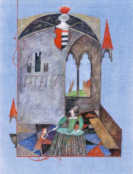 Заперла ведьма Преццемолину в кухне и ушла. Девушка взялась было за работу, да быстро смекнула, что не справиться ей с таким делом за несколько минут. Сидит перед мешком и рыдает. А Бенсиабель тут как тут.