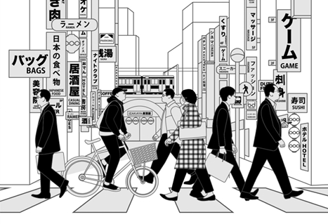 Внезапно крупные капли дождя начинают колотить по листьям сакуры – нынче она уже в полном цвету. На пешеходной дорожке со светлым покрытием, напоминающим изразец, капли то тут, то там оставляют черные пятна. Прохожие достают из сумок и раскрывают складные зонтики – красные, черные, в розовую крапинку, темно-синие с белой каемкой…