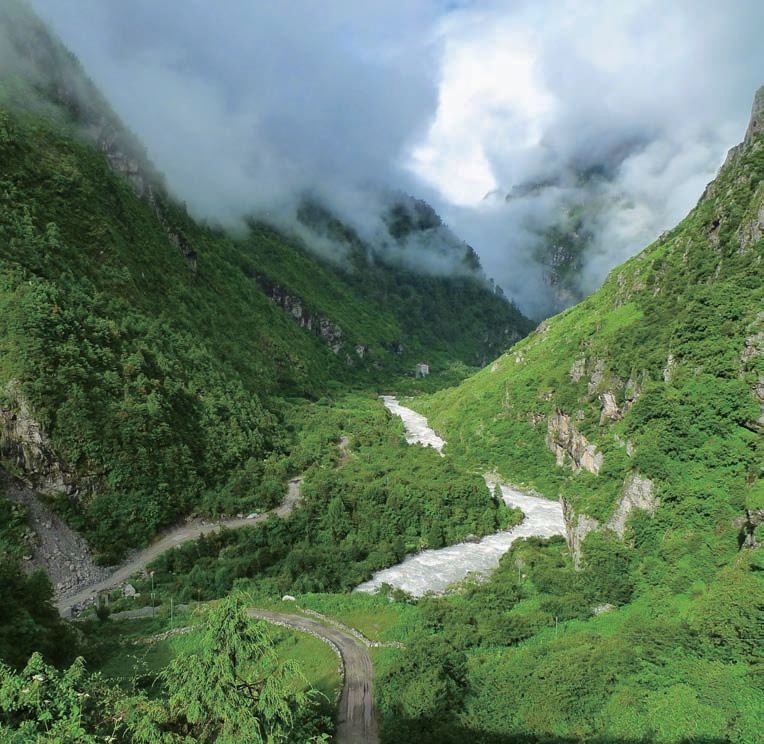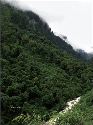 Высокогорный район на южном склоне горы Джомолунгма представлен глубокими каньонами. Южный склон горного хребта изрезан в продольном направлении с запада на восток несколькими долинами, которые формируют рифтовую зону и находятся в высокогорной зоне влажных лесов с муссонным климатом. Южный склон представлен вечнозелёными тропическими лесами, альпийскими хвойными лесами и зоной альпийской растительности. Значительную территорию занимают девственные леса, где обитает большое количество диких животных и растений, находящихся под угрозой исчезновения. Высокие горные вершины достигают облаков, преграждая путь идущим с северной стороны с Индийского океана муссонным облакам, которые опускаются на каньоны в виде ливней и как результат создают райские уголки дикой природы.
