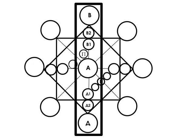 Второй столбец «Энергия», и заполняется он энергиями, которые стоят на духовной линии, на схеме это точки В, В2, В1, П, А, Д1, Д2 и Д.