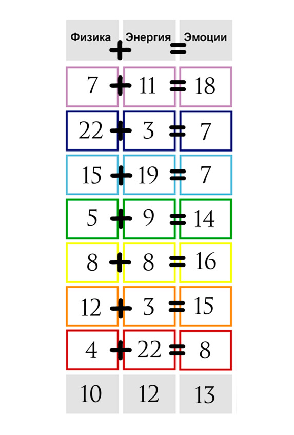 Теперь суммируем построчно энергии в двух столбцах: Физика + Энергия = Эмоции.