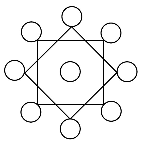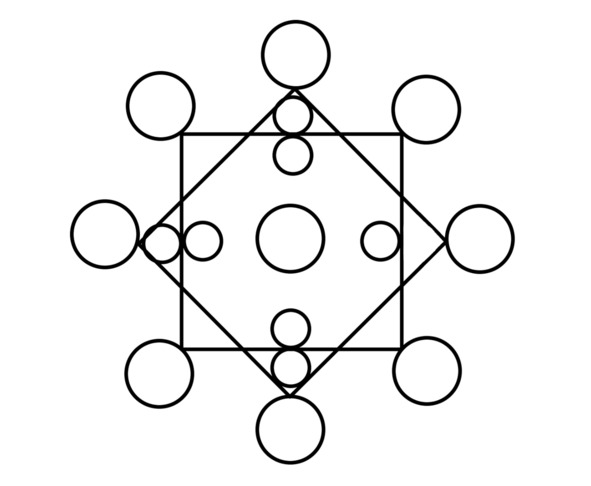Сначала мы рисуем обычный квадрат (родовой), а потом уже ромбообразный квадрат (личный). И в итоге получается у нас октограмма.