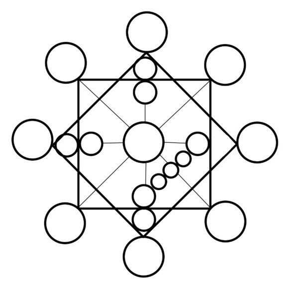 Таким образом, мы рисуем ещё две небольшие точки в глубь матрицы т.е. к центру от каждой точки на личном квадрате. Кроме материальной кармы.