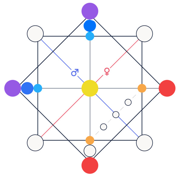 Для удобства можно соединить данные точки тонкими линиями с центром Матрицы. Так будет проще глазу проследить соединение между точками.