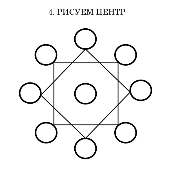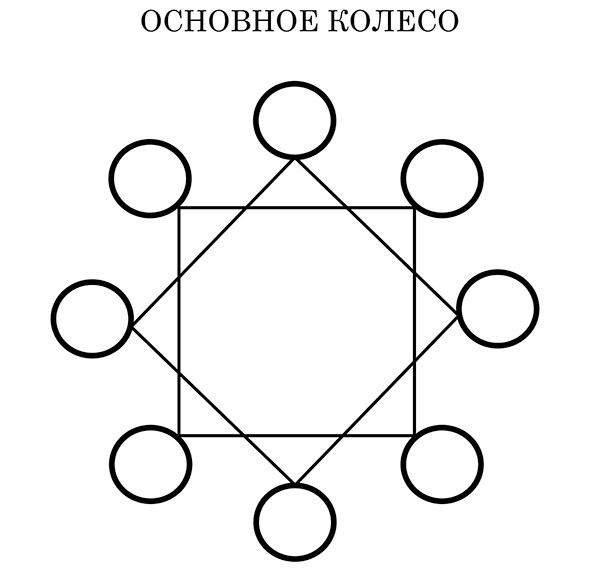 Основное колесо матрицы – это 8 главных и крупных точек по углам квадратов.