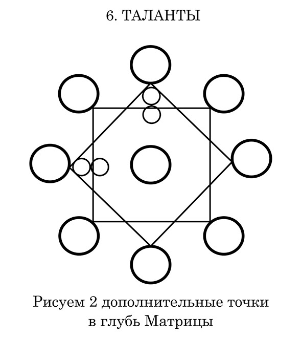 Точки дополнительного таланта (на рис. номер 12 и 13) показывают дополнительные возможности, предрасположенности и таланты человека, которые он может в себе развить.