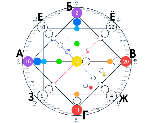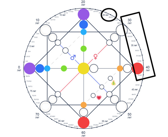 В Матрице мы можем увидеть данную периодность: 0, 10, 20, 30, 40, 50, 60, 70 лет.