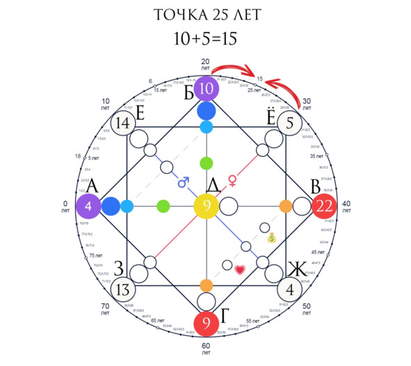 Например, 87 лет – это будет точка 6—7,5 лет на кругу Матрицы.