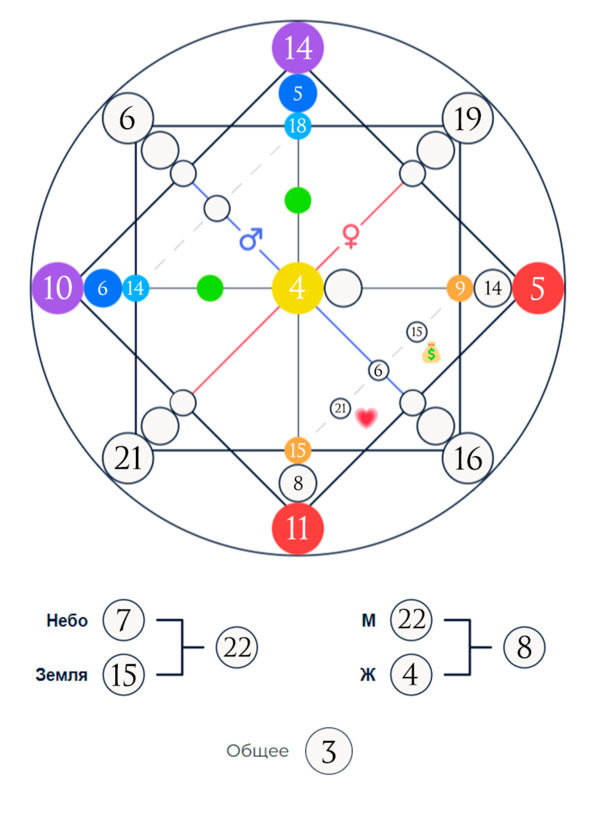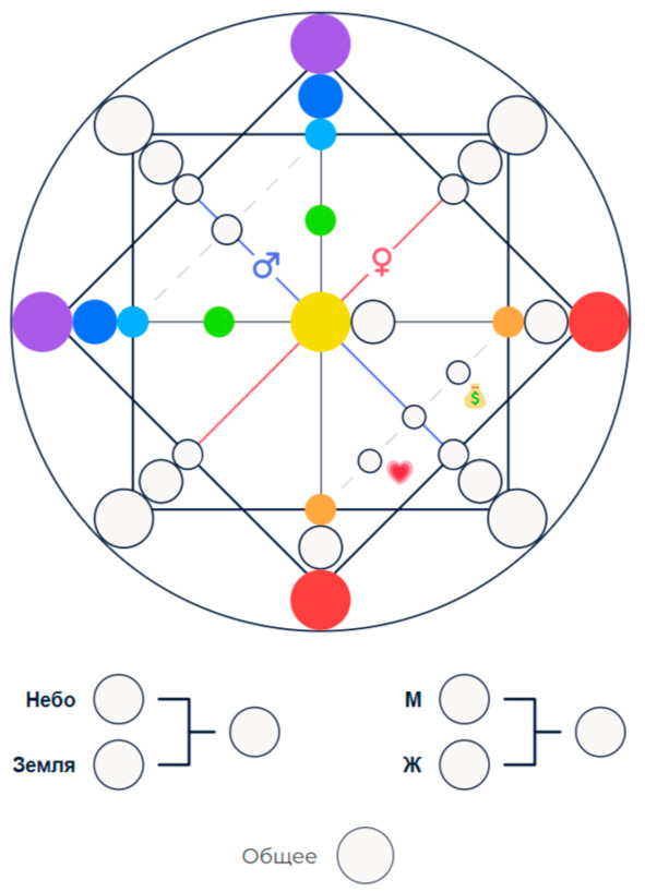 Нам нужно рассчитать матрицы двух человек в паре. Рассчитываем все основные точки и линии в базовой матрице. В том числе блок предназначений.