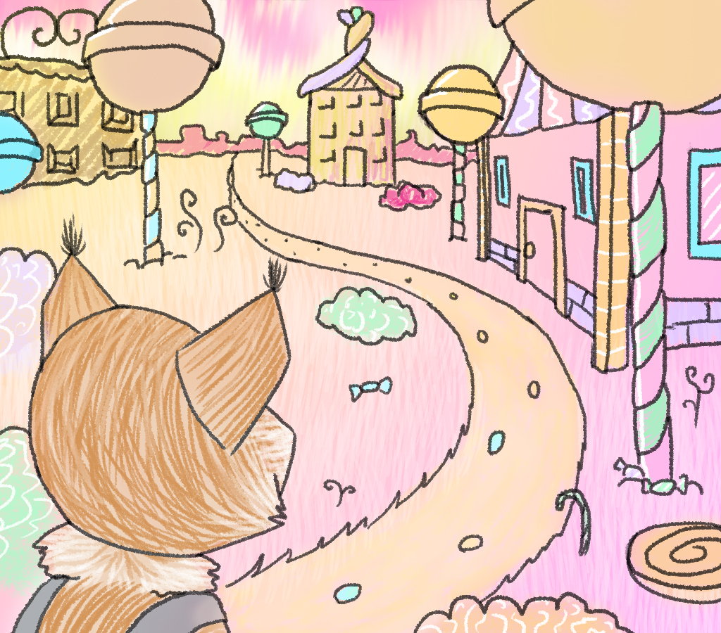 Приснился рысёнку Яше сон: большие, прозрачные, разноцветные леденцы размером с дом выстроились в ряд, как городская улица. В руках у Яши были леденцы поменьше. И он шёл по этой конфетной улице и ел сладости. Апельсиновые, яблочные, виноградные, карамельные! На палочках и в фантиках! В форме животных, спиралек, замысловатых сосулек и просто круглые! И так это все было вкусно!