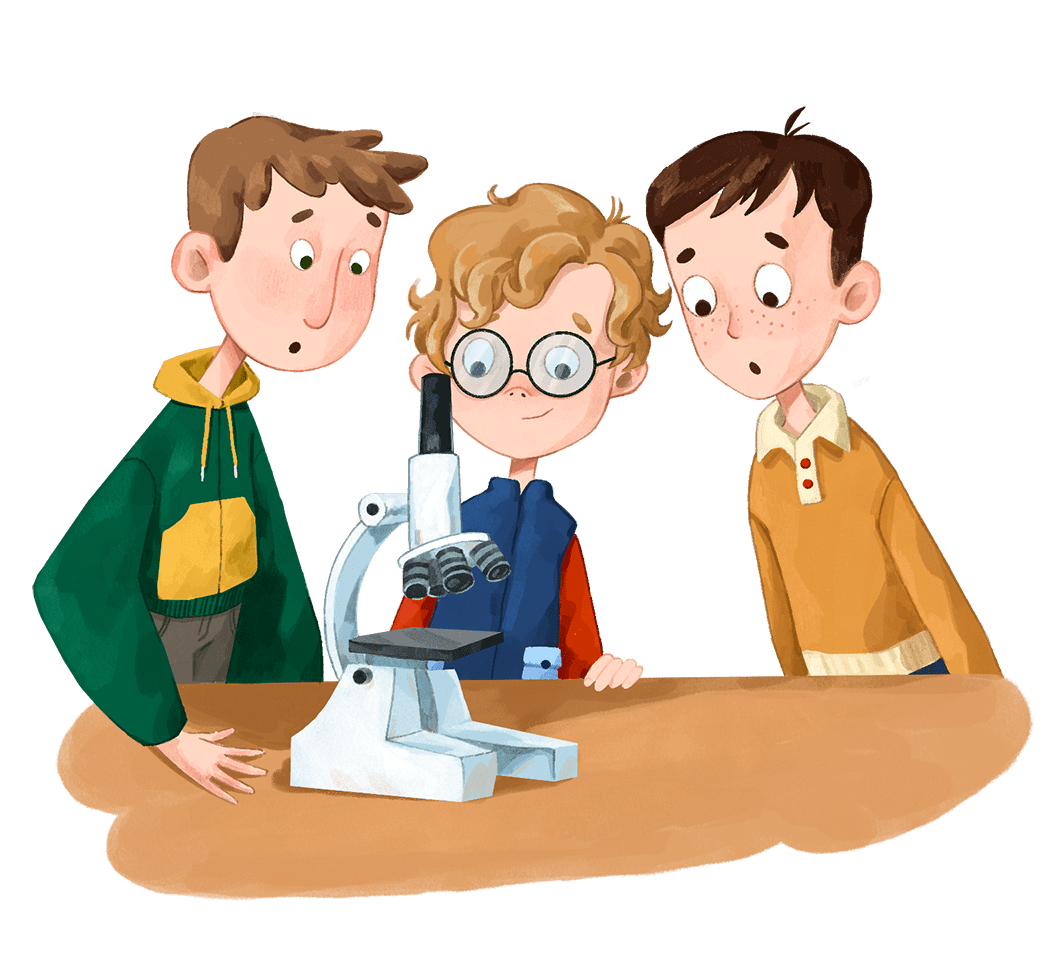 Однажды Саша притащил в школу микроскоп, и на переменке все рассматривали травинку и комара. А потом Даня решил посмотреть на соплю и заляпал все стёклышки.