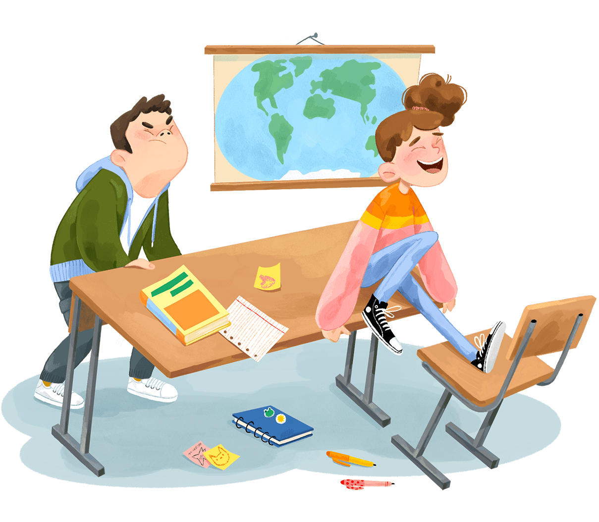 Высокий и крепкий Марк не любил, когда его отвлекали. А в эту минуту он как раз пытался поднять свою парту, на которой сидела Света. Света испуганно попискивала, но видно было, что ей эта тяжёлая атлетика нравится. Экстренно затормозивший Максим всё-таки немного задел Марка, парта глухо стукнула об пол, а Света прикусила язык.