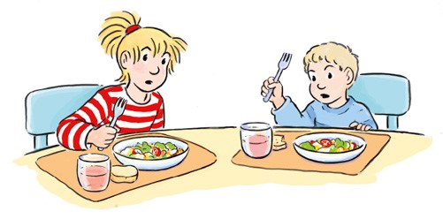 Папа уселся, и мама положила ему на тарелку гигантскую порцию салата. Но папа не притронулся к еде. Он перевёл взгляд с одного члена семьи на другого.