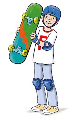 Поставив одну ногу на скейт, он оттолкнулся другой ногой и разогнался. Потом вдруг раз – и Пауль уже уверенно ехал вперёд, стоя обеими ногами на скейте. Немного прокатившись по инерции, он спрыгнул с доски, впрочем, не так элегантно, как планировалось. Пауль споткнулся, пытаясь удержать равновесие и размахивая руками, и в конце концов приземлился на пятую точку.