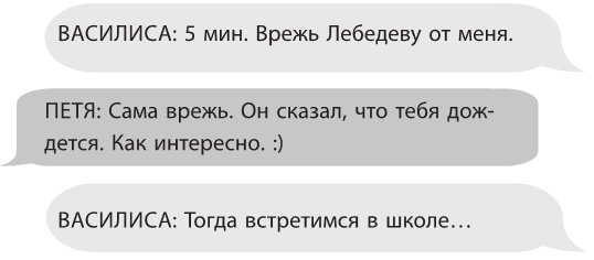 Мысли текли своим чередом, а текст на двойном листочке – своим. Заученная схема, заученные слова – Василиса писала автоматически. За двадцать пять минут работа была готова. Пока остальные продолжали корпеть над сочинением, Василиса отложила ручку и достала из кармана телефон. Вытянув длинные ноги так, что они едва не задевали стул сидящего впереди одноклассника, она открыла сообщение Лебедева.