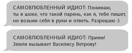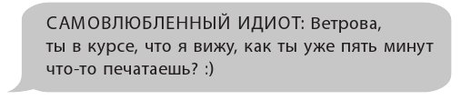 – Ветрова, поделишься с нами подробностями переписки с Самовлюбленным идиотом? Кстати, кого это ты так величаешь, позволь спросить?
