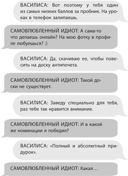 Василиса оцепенела от ужаса. Подняв глаза от экрана, она поняла, что все в классе на нее смотрят – кто-то с недоумением, кто-то с усмешкой. Катерина застыла, повернувшись к ней вполоборота и прижав руку к губам, Петя вытаращил глаза и пробормотал: