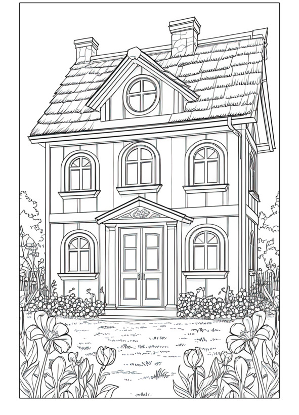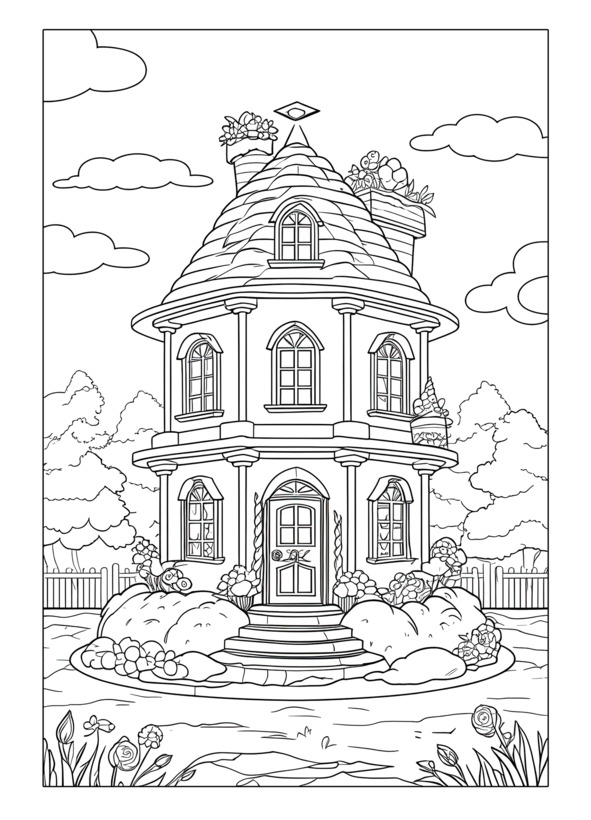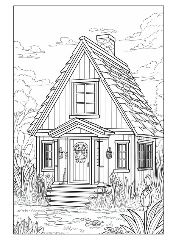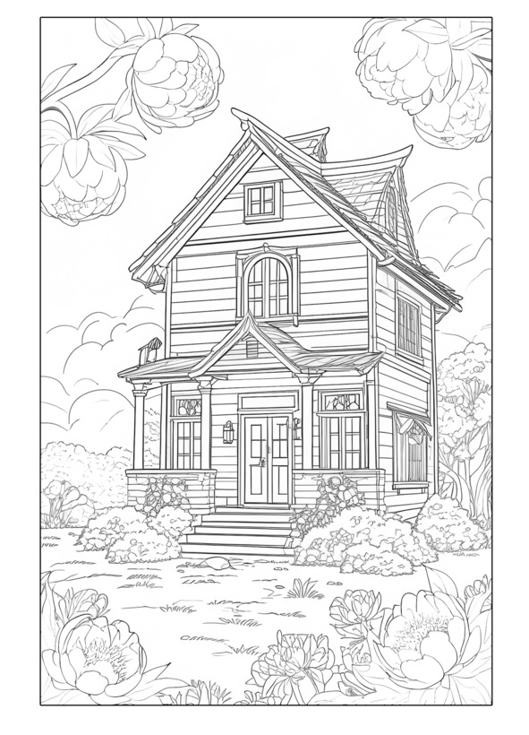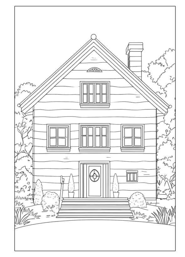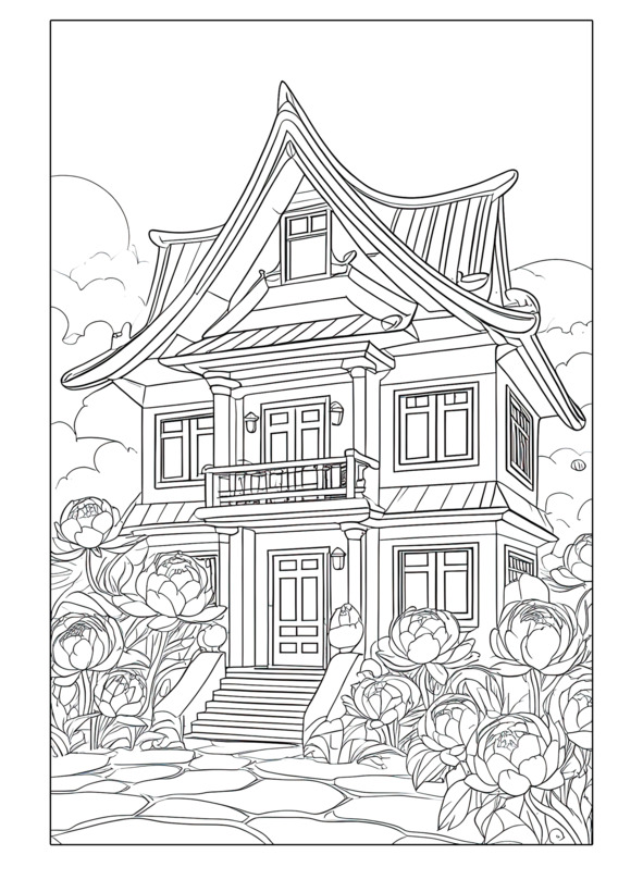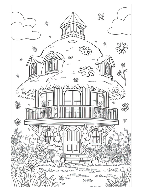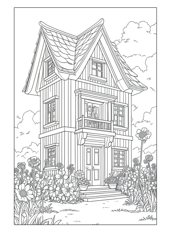 Chibi Houses. Mini Coloring Book for Stress Relief