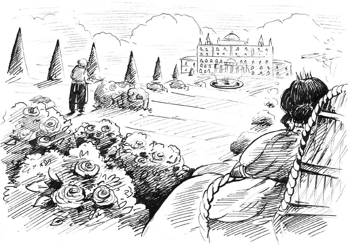 Королеве распахнули окно. За густыми цветущими липами угадывались яркие одежды многочисленных подданных, они мелькали как разноцветные фонарики в листве.