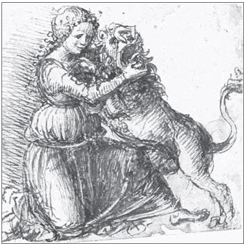 Джованни Беллини. Женщина со львом. Рисунок. 1470 г.