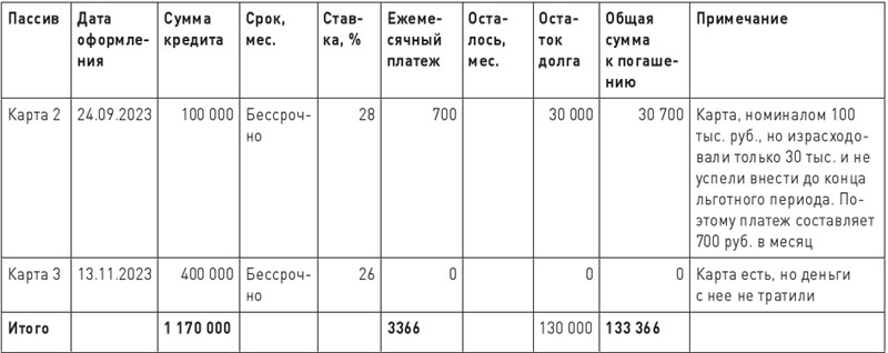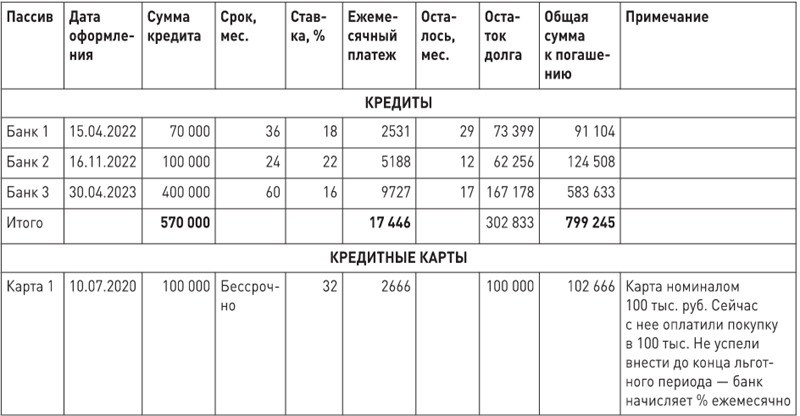 Пассивы – это обязательства перед третьими лицами, в том числе кредиты, кредитные карты, займы.