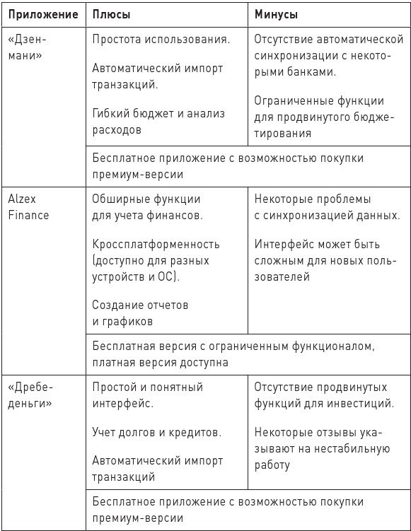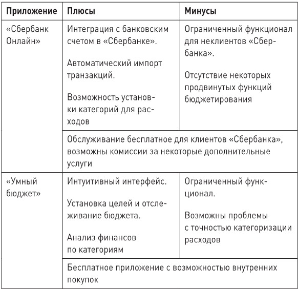 Таблица 1.4. Сравнительный анализ мобильных приложений для учета личных финансов