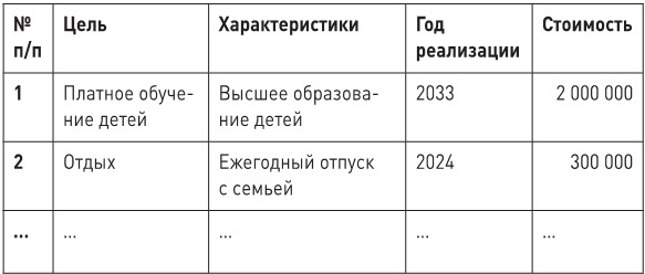 Как вы уже догадываетесь, финансовые цели тоже лучше оформить в виде списка или таблицы. Например, вы можете использовать вот такой шаблон (табл. 1.5).