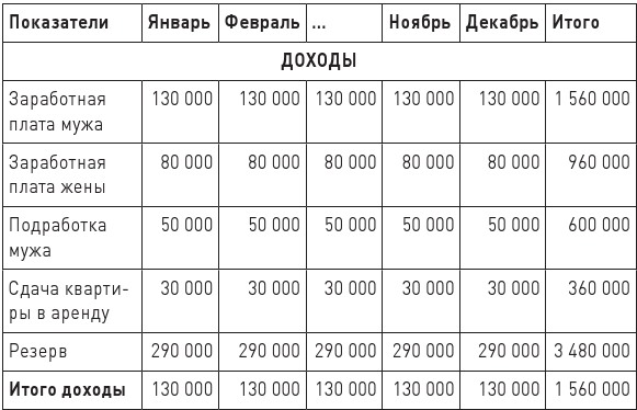 Таблица 1.6. Пример финансового плана семьи с двумя детьми
