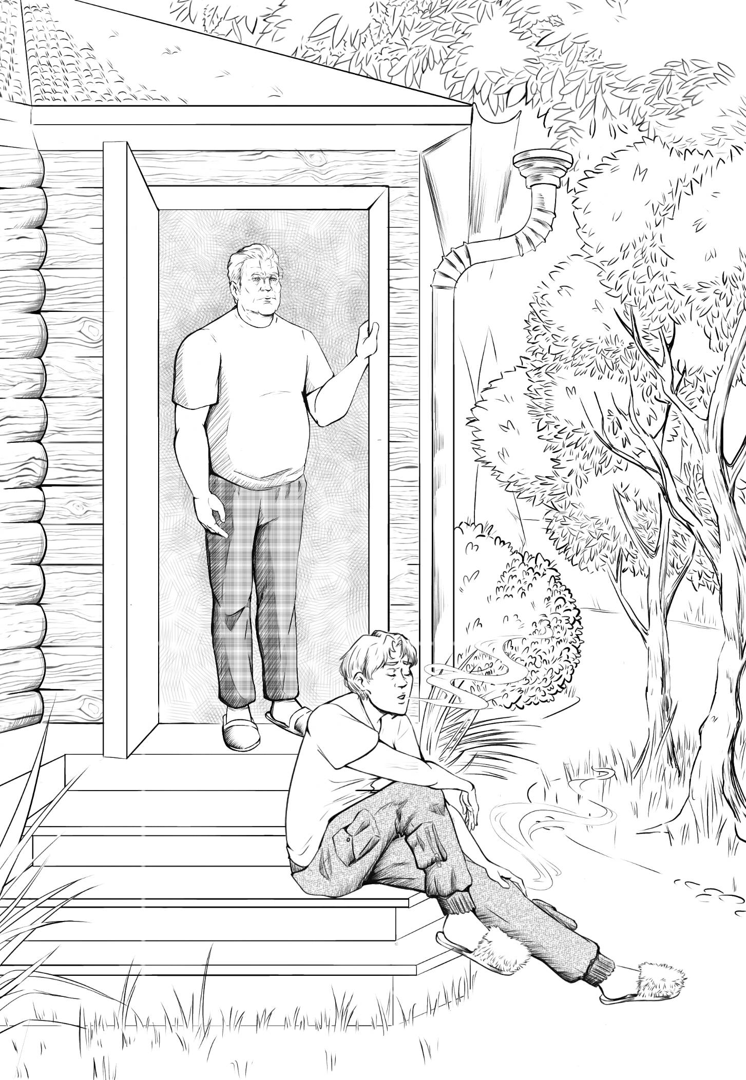 Ночь. Благословенное время суток, когда, если очень повезёт, никому ничего от неё не надо. Когда можно снять все маски, особенно самую непосильную, ту, что с улыбкой «у нас всё хорошо». Выкурить традиционную сигарету. Но сегодня сигарета не одна. В банке-пепельнице гора окурков, на крыльце рядом с Сашкой пустая смятая пачка. А Сашка сидит, уткнув голову в колени, и ревёт. Потому что просто больше не может.