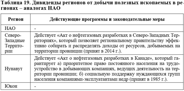 Прибыль от добычи углеводородов в НАО – статья доходов федерального бюджета, откуда средства уже перераспределяются на нужды регионов. Почти во всех зарубежных аналогах часть доходов от добычи полезных ископаемых напрямую используется для социальной поддержки населения, предоставления регулярных выплат и льгот (табл. 19).