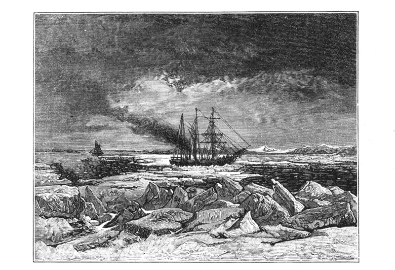 Обычная температура конца августа в Ледовитом море близка к точке замерзания. Однако на этот раз она постоянно держалась на −3…−6°. Воздух был резкий и холодный, шел сильный снег. Солнце светило редко, уже несколько дней как оно в полночь заходило за горизонт. Судно покрылось льдом: все указывало на то, что зима началась. Окружающие нас ледяные массы состояли только из небольших глыб, и мы надеялись, что восточные ветры их вскоре снова разгонят. Между тем случилось обратное: низкая температура, штиль и снегопад скрепляли обломки льда все сильнее и в несколько дней все смерзлось в одну крепкую льдину, в середине которой оказалось неподвижно закрепленным наше судно[205].