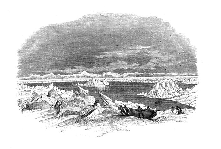 Неописуемо однообразным было это окружение, состоявшее из сплошного белого покрова. Отдаленная от нас на несколько миль гористая поверхность Новой Земли была покрыта свежим снегом.
