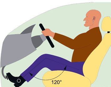 Я слышал и читал рекомендации держать изгиб ноги под углом примерно в 120 градусов. И в автошколе, где вы учитесь или только собираетесь, наверняка есть плакат с картинкой на эту тему и этим «обязательным» углом. Сев в автомобиль, вы будете измерять этот угол? Интересно, чем?