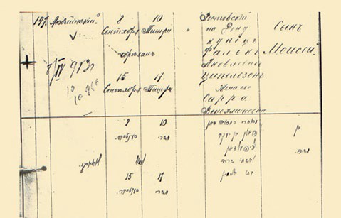 Запись о рождении Моисея Ципельзона, моего дедушки