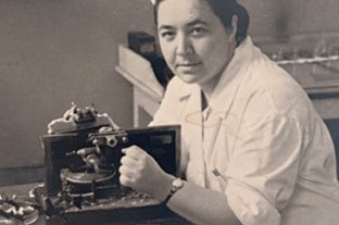 Елена Домбровская за подготовкой препаратов. 1949 г.