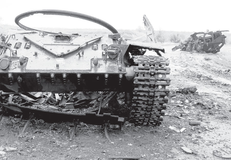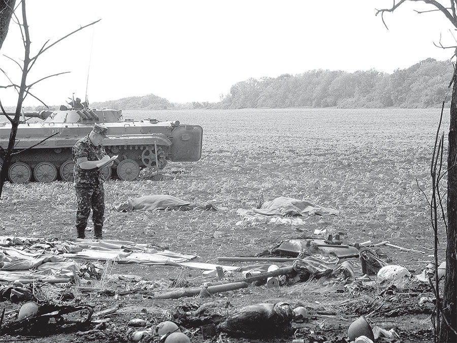 И вот теперь близ Благодатного происходит то, о чем он предупреждал. То есть на полную мощность врубилась камнедробилка войны, которая с одинаковой легкостью перемалывает танки и кости пехотных капитанов. Правда, попасть с ходу на место сшибки нам не удалось. За железнодорожным переездом асфальт преградил военный грузовик, чей кузов прикрывали лохмотья камуфляжной сетки, что делало его похожим на копну лугового сена и цыганскую кибитку одновременно.