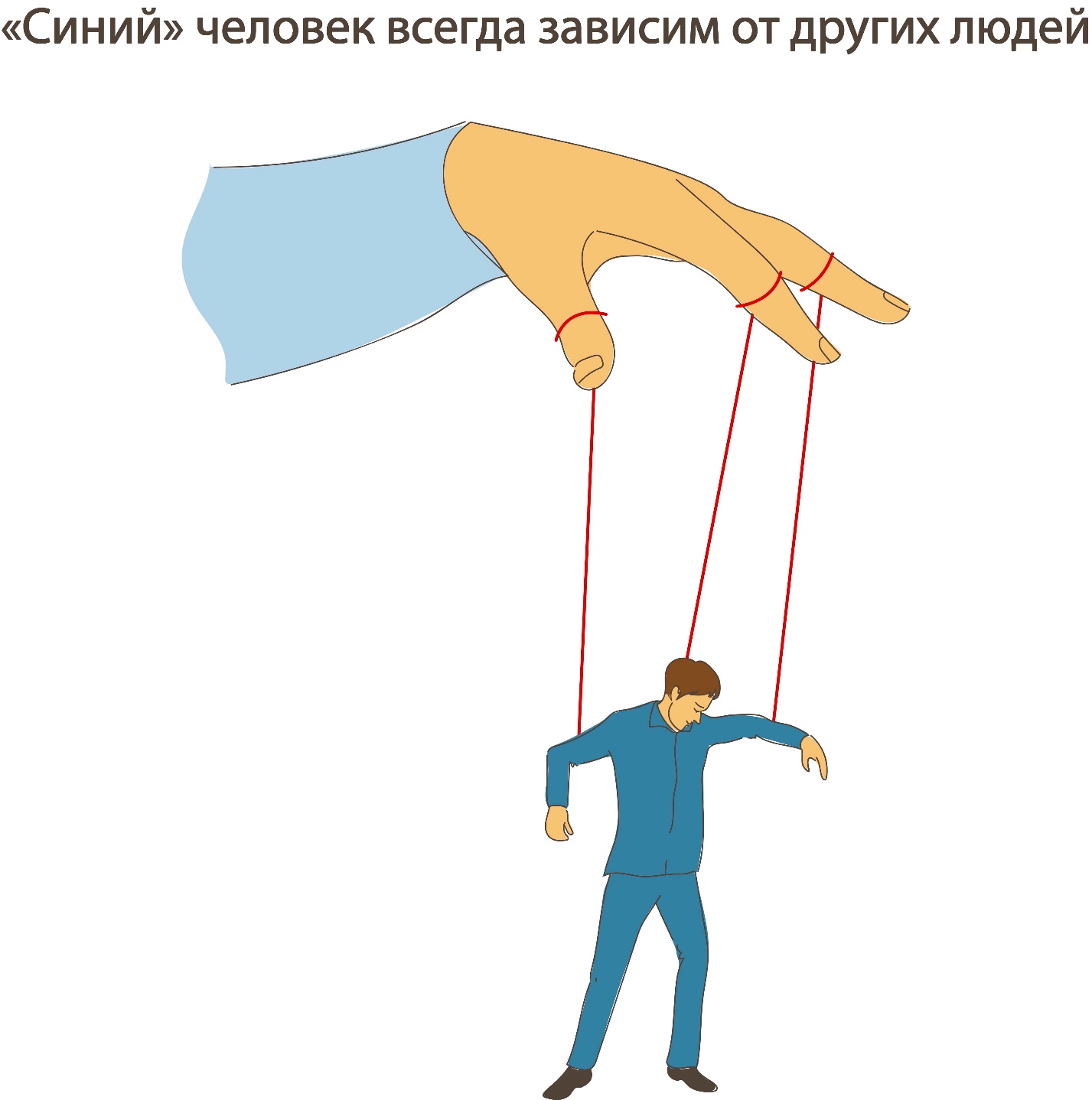 Также ведет себя «Синий» человек и в отношениях. Идя на поводу у более сильной в ментальном плане второй половины, он подчиняется ее воле и подавляет собственные потребности.